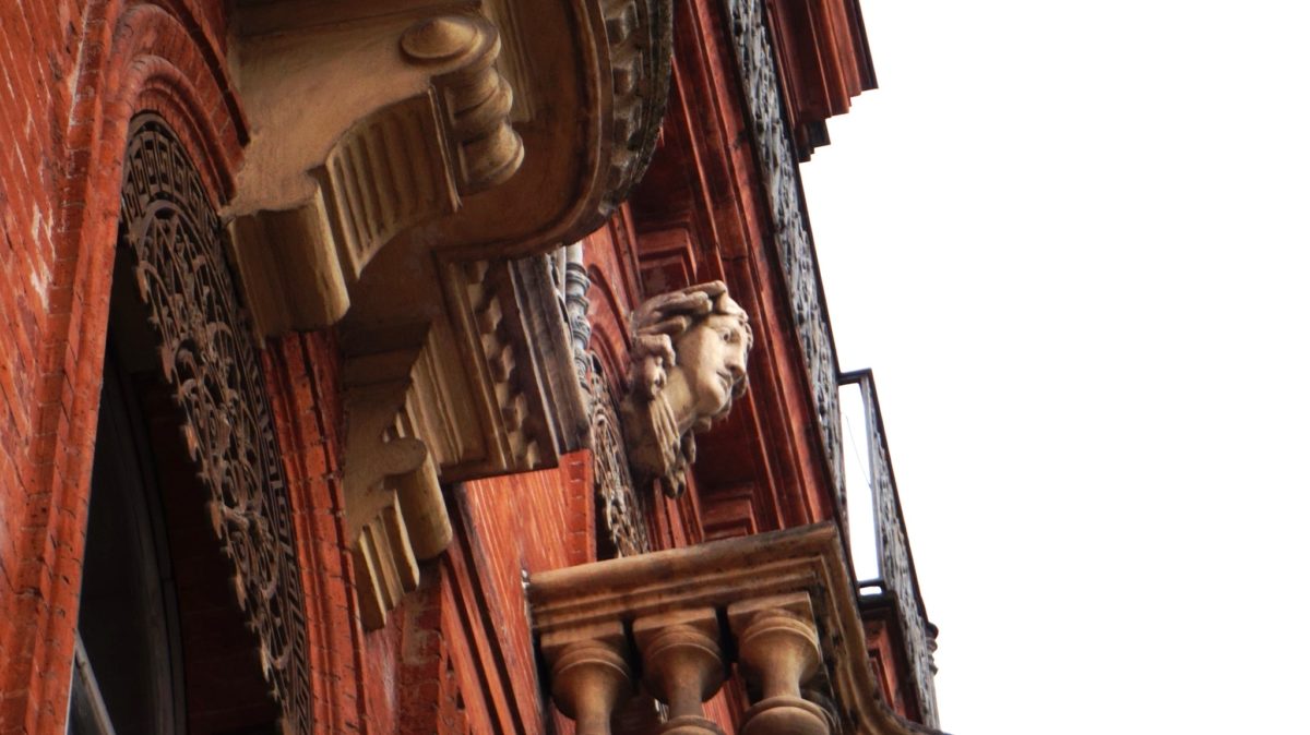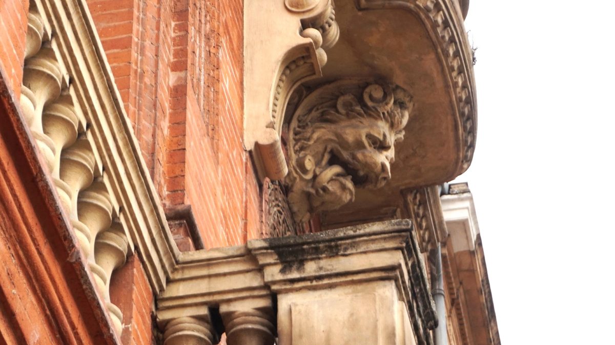 Difficile de ne pas remarquer cet immeuble depuis le boulevard Carnot (au 1), derrière les palissades des travaux du métro, avec sa large façade de briques, ses balcons ventrus typiques, ses pilastres aux chapiteaux corinthiens et sa décoration généreuse (têtes féminines, lions).