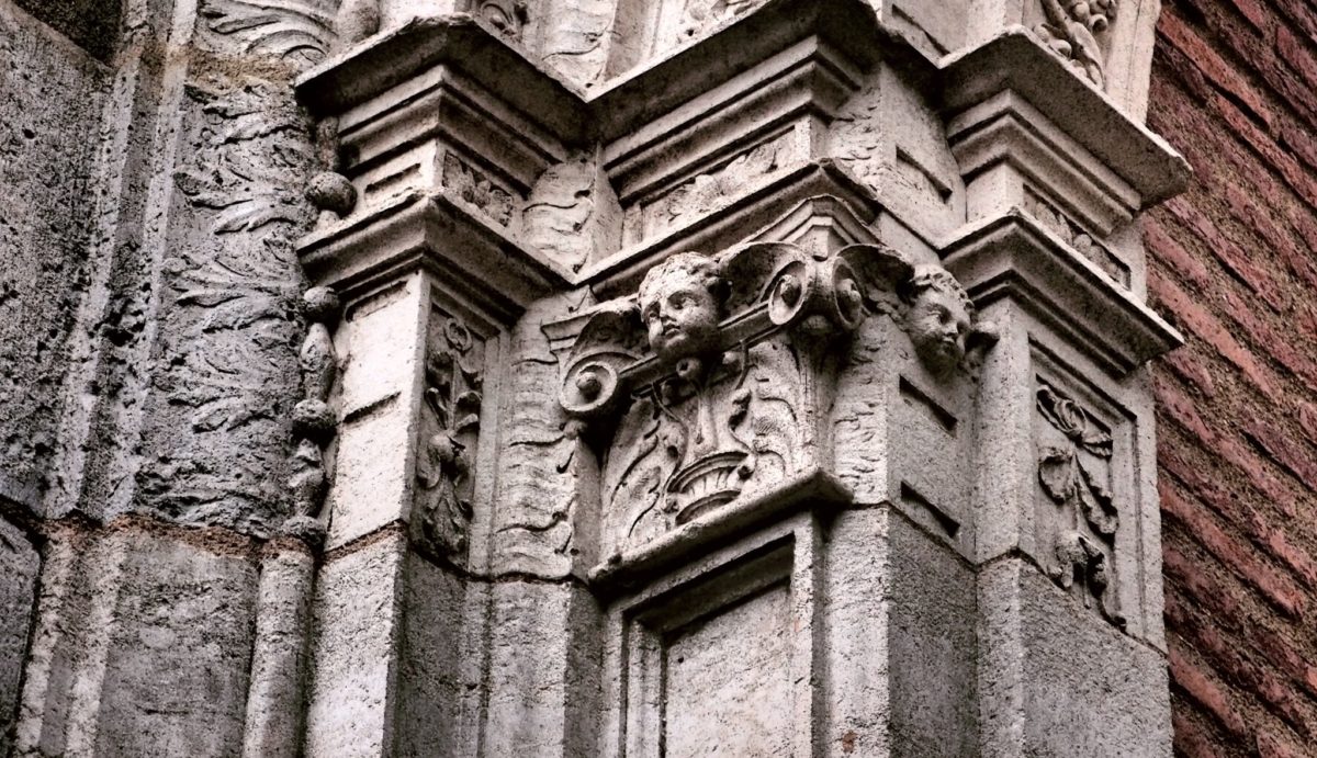 Un air Renaissance à l’avant porte qui précède à la magnifique porte Miègeville (la porte qui conduit vers le milieu de ville) ou “Porte des Innocents”… .Avec Deux angelots égarés.